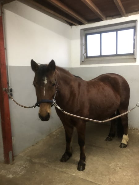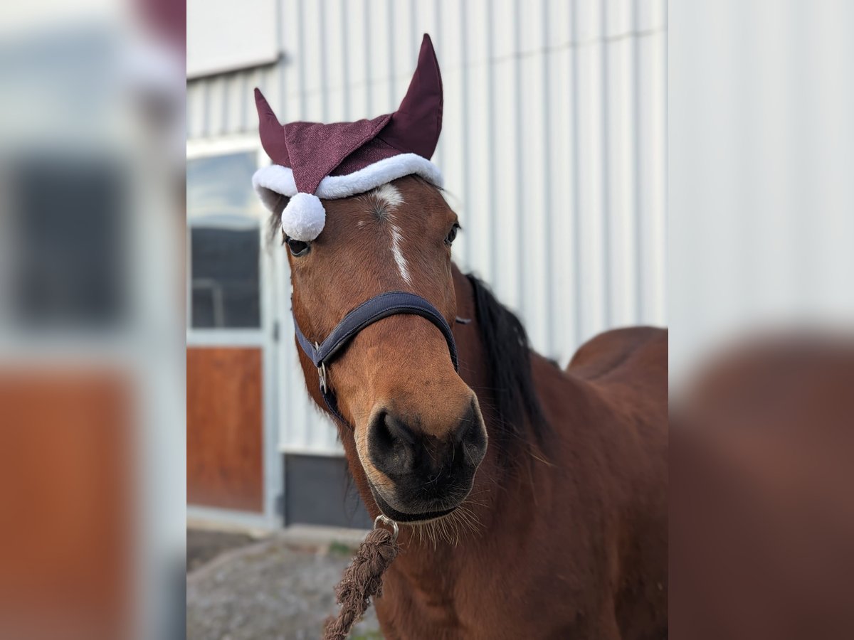 Zum Verkauf steht meine hübsche braune Trakehner-Mix Stute Leika. Sie ist 7 Jahre alt, ca. 1,44 m groß und überzeugt durch ihren ruhigen Charakter sowie ihrer Freude an Bewegung. Leika ist eine menschenbezogene und freundliche Stute, die sich besonders gut für den Freizeitbereich eignet. Sie ist lieb im Umgang und genießt gemeinsame Aktivitäten mit ihrem Menschen. Gesundheit: Bei einer Röntgenuntersuchung der Wirbelsäule wurden Engstellen zwischen den Wirbeln im Lendenwirbelbereich festgestellt. Daher ist sie nur eingeschränkt reitbar. Ausbildung & Einsatzmöglichkeiten: - angeritten - trägt einen Reiter + Sattel bis 50 kg - sehr gut geeignet für Bodenarbeit und Spaziergänge - liebt es, geputzt zu werden - könnte zum Kutschefahren ausgebildet werden - auch als Handpferd vorstellbar - ebenfalls gut geeignet als Beistellpferd Haltung & Pflege: - kennt Offenstall und Box - kennt im Sommer 24/7 Weidegang - barhuf - geimpft und entwurmt - Zähne gemacht 08.25 Leika ist eine tolle Begleiterin für ihren Menschen, die ein ruhiges, freundliches Pferd für Freizeit und Bodenarbeit suchen. Bei ehrlichem Interesse gerne melden.