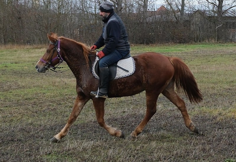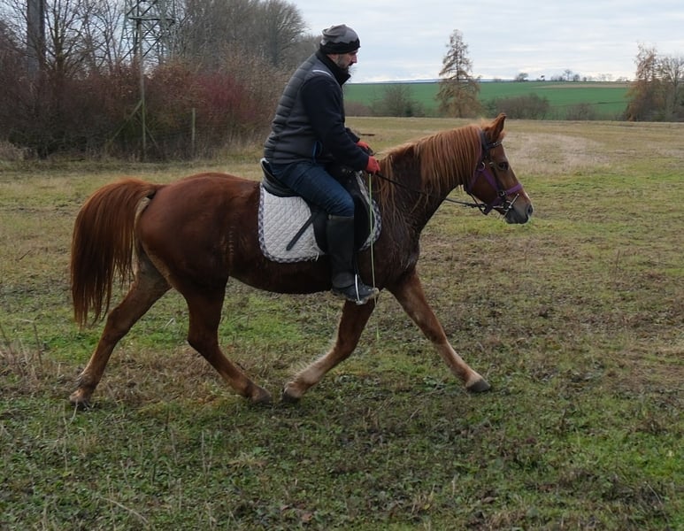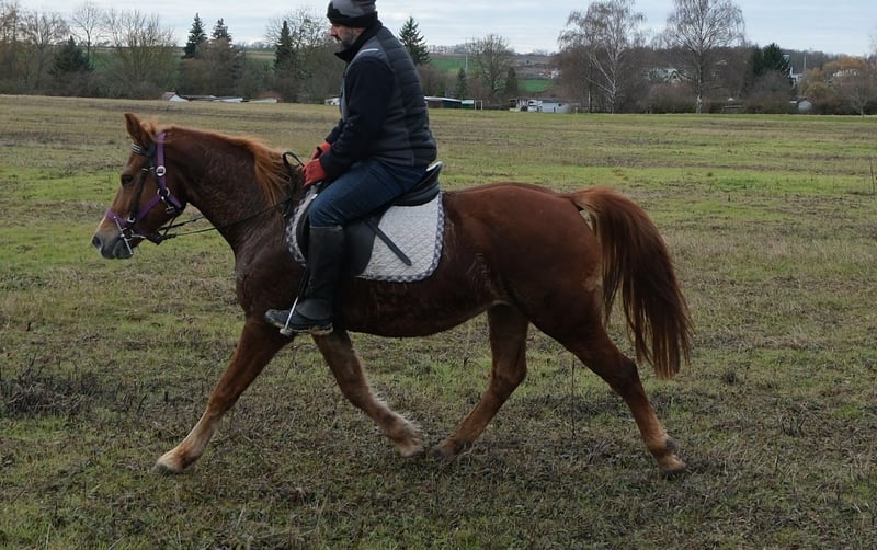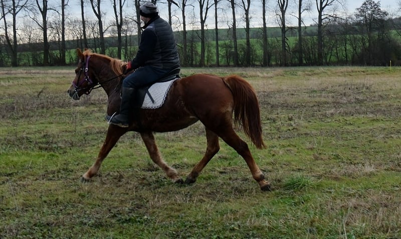 Marlena is well-schooled in the terrain, on the riding arena, and in the indoor arena. She is uncomplicated and easy to handle. With her sturdy build, she is suitable for larger riders. Additionally, she has been driven single harness. Age: 7 years, 14.1 hh Please call if interested; no emails! No guarantee for any potential errors in the description. Tel.: 0173-3843407 As this is a living animal, these are subjective impressions of the seller and do not constitute guaranteed characteristics of the horse! Constantly available beautiful riding and leisure horses, as well as new carriages of various models at affordable prices. Stable address: 99628 Buttstädt, Oberwendenstraße 39