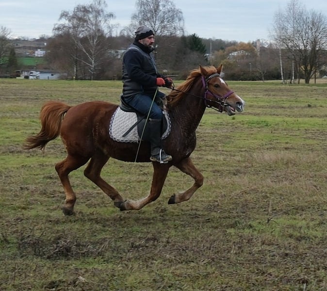Marlena ist bestens im Gelände geritten sowie auf dem Platz und in der Halle. Sie ist unkompliziert und einfach zu händeln. Mit ihrem kräftigen Körperbau ist sie auch für größere Reiter geeignet. Weiterhin ist sie einspännig gefahren. 7 Jahre, 148cm Bei Interesse bitte anrufen, keine Mail! Für eventuell auftretende Fehler in der Beschreibung gilt keine Gewähr! Tel.: 0173-3843407 Da es sich um ein lebendes Tier handelt, sind dies subjektive Eindrücke des Anbieters und keine zugesicherten Eigenschaften des Tieres! Ständig schöne Fahr-u.Freizeitpferdesowie neue Kutschen verschiedener Modelle preiswert im Angebot. Anschrift Stall: 99628 Buttstädt, Oberwendenstraße 39