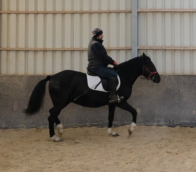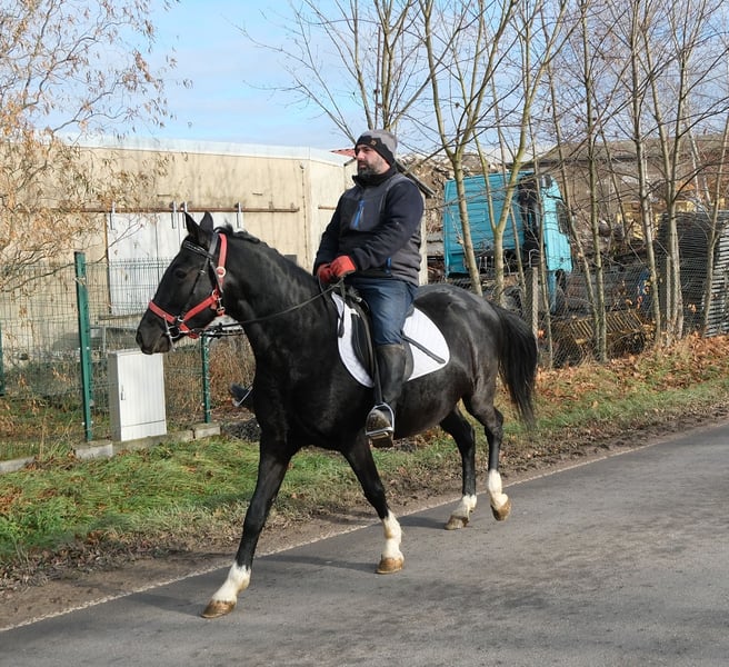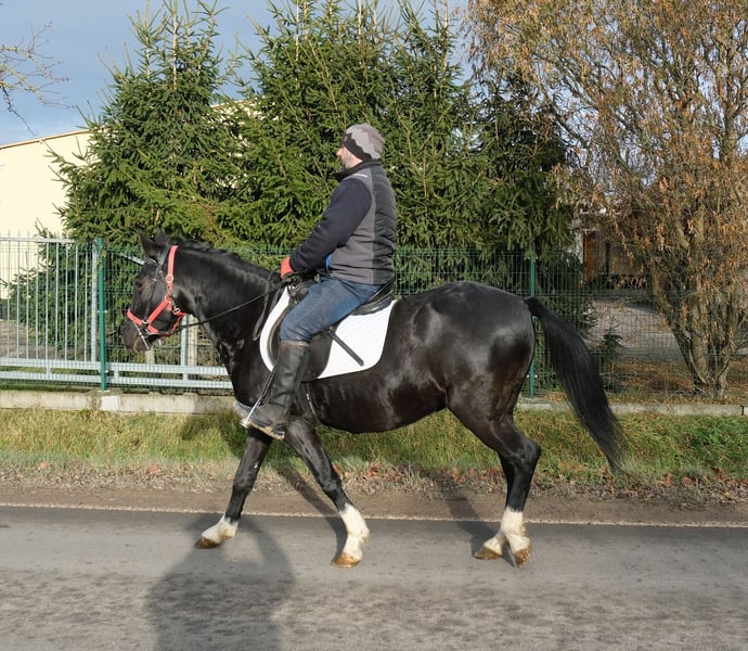 Sehr schöne und durch ihre 4 weißen Beine auffällig gezeichnete Stute. Maja ist geritten auf dem Platz,Halle und bestens im Gelände. Sie ist unkompliziert und einfach zu händeln. Mit ihrem kräftigen Körperbau ist sie auch für größere Reiter geeignet. Ein optimales Wiedereinsteigerpferd, Pferd für Kinder und ältere Leute! Weiterhin ist sie einspännig gefahren. Freizeit-Western-Geländereiten,fahren,Reitschule 8 Jahre, 148cm Bei Interesse bitte anrufen, keine Mail! Für eventuell auftretende Fehler in der Beschreibung gilt keine Gewähr! Tel.: 0173-3843407 Da es sich um ein lebendes Tier handelt, sind dies subjektive Eindrücke des Anbieters und keine zugesicherten Eigenschaften des Tieres! Ständig schöne Fahr-u.Freizeitpferdesowie neue Kutschen verschiedener Modelle preiswert im Angebot. Anschrift Stall: 99628 Buttstädt, Oberwendenstraße 39