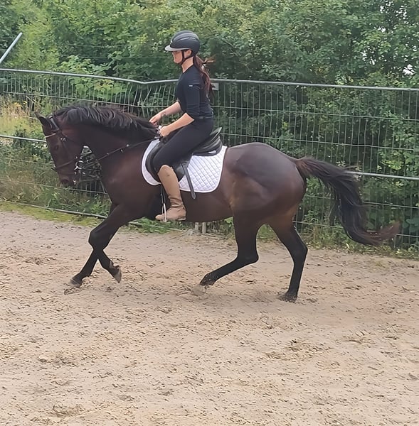 Star (nickname Sternchen) is an absolute eye-catcher. At 8 years old, he is calm and well-trained. Approximately 152 cm tall (just over pony height). Interesting for children as well as for smaller adults. Ideal for starting in competitions. Highly comfortable to ride. Relaxed downwards but also easy to position in a perfect frame. Three dynamic gaits that are great to sit. This sweet mare also impresses when jumping. A horse that makes girls' hearts race. If needed, she can be sold with complete new equipment for a small additional fee. Transport is possible. A veterinary pre-purchase examination can also be conducted by your own veterinarian, including X-rays and blood tests. We look forward to your call at 01774289729. Written inquiries will not be answered. Calls from withheld numbers will be automatically rejected.
