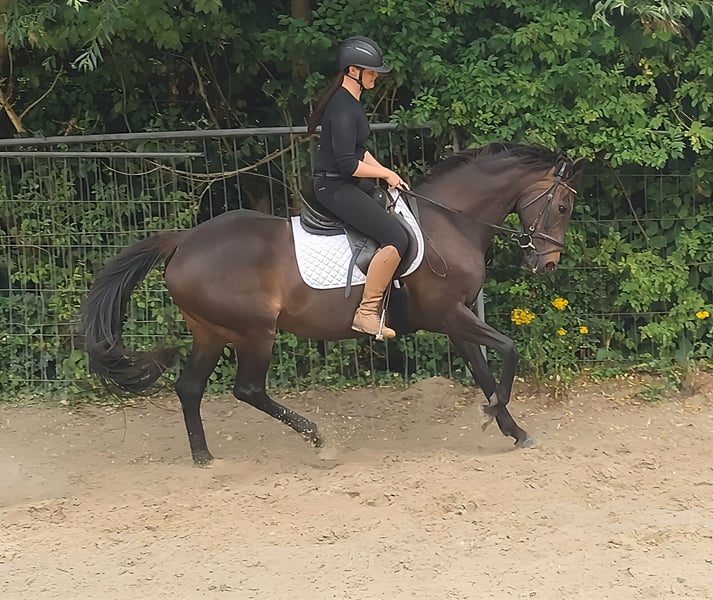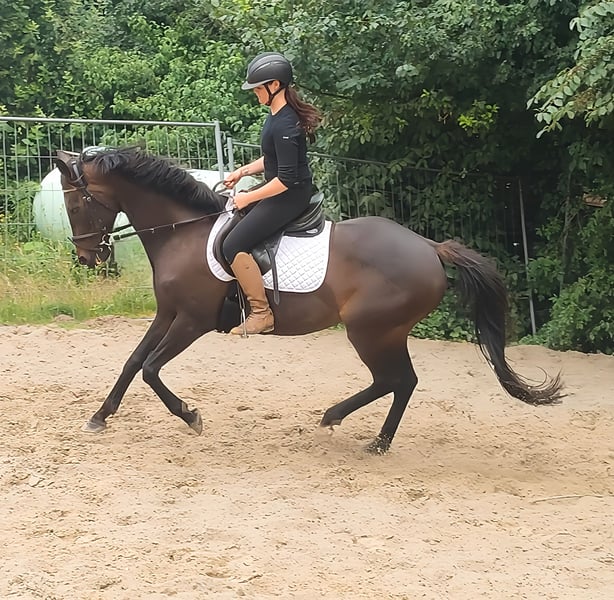 Star (apodo Sternchen) es un verdadero atractivo. Con 8 años, está bien entrenado y es muy equilibrado. Mide aproximadamente 152 cm (es decir, un poco más de la medida de pony). Interesante tanto para niños como para adultos más pequeños. Ideal también para el inicio en competiciones. Muy cómodo de montar. Suelto hacia abajo, pero igualmente sin problemas para colocarse en una perfecta posición vertical. Tres dinámicos y agradables a la silla GGA. También en el salto, esta dulce yegua sabe convencer. Un caballo que hace latir más rápido los corazones de las niñas. Si es necesario, se puede entregar con un nuevo equipo completo por un pequeño recargo. Transporte posible. La revisión veterinaria de compra también puede ser realizada por su propio veterinario, incluyendo radiografías y análisis de sangre. Esperamos su llamada al 01774289729. Las consultas por escrito no serán respondidas. Las llamadas con número oculto serán rechazadas automáticamente.