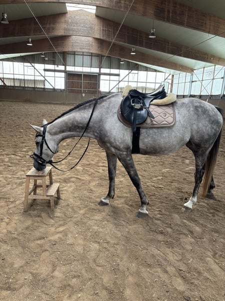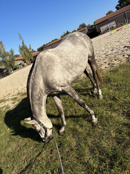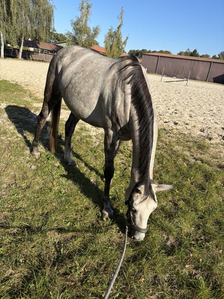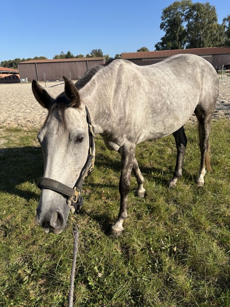 Aus persönlichen Gründen wird ein Verkauf in Erwägung gezogen, falls sich die passende Person findet. Die Stute ist 9 Jahre alt (*2017, Stockmaß ca 155 cm), sehr sensibel, stutig und schlau und benötigt daher eine ruhige, klare Bezugsperson und konstante Arbeit. Durch einen Riss im Unterstützungsband und meine darauf folgende Schwangerschaft stand sie auch nach der Auskurierung noch länger auf der Wiese und wurde erst 2024 schonend angeritten. Entsprechend ist sie ausbildungstechnisch nicht altersgemäß gefestigt. Bei Unsicherheiten zeigt sie schnell Spannung, weshalb sie nicht für Anfänger:innen geeignet ist. Perspektivisch A-Niveaus Dressur / Springen in der Zukunft bei weiterer Ausbildung, für den gehobenen Freizeitsport. Jedoch aufgrund ihres Charakters vermutlich nie ein Schleifengarant oder „Selbstläufer“. Unter dem Reiter benötigt sie eine sehr sichere, ausbalancierte und ruhige Reitweise. Im Stall webt sie leider. Mit viel Draußenzeit und ausreichend Heu, lässt sich das Stressverhalten gut reduzieren. Sie läuft aktuell Barhuf und zeigt sich dabei schmiedefromm und lässt sich gut verladen. Sie wurde bereits im Gelände geritten und macht dies artig, ist jedoch nicht verkehrssicher, da sie in der Stadt große Angst vor Autos zeigt. Gesucht wird ein erfahrener, reflektierter Mensch mit realistischen Erwartungen, der Freude an Aufbauarbeit hat und bereit ist, in Ausbildung, Training und Haltung zu investieren, ohne sportlichen Druck. Abgabe erfolgt nicht aus Zeitdruck, sondern ausschließlich in ein passendes, langfristiges Zuhause. In der Zwischenzeit wird sie kontinuierlich weiter ausgebildet. Am Liebsten mit Equipment abzugeben, da Spring- und Dressursattel erst auf sie angepasst wurden. Platz vor Preis, inkl. des Equipments. Gerne auch vorab zur Verfügung.