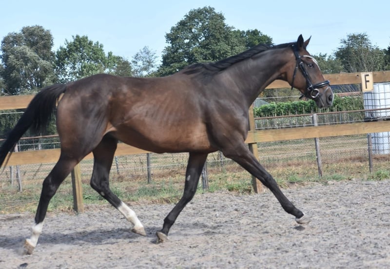 Eye-catcher: Correct, very honest 9-year-old riding horse Paddy is a 9-year-old mare, approximately 1.62 m tall, with a pedigree of Leading Light x Caoba by Hernando (FR). She has an elegant yet solid build, with beautiful long legs, and is a pleasure to ride. Paddy is far from lazy and enjoys working for her rider. She has a soft mouth and responds nicely to aids. A heavy hand is absolutely unnecessary with her. Paddy is traffic-safe, healthy, and free of any vices. She is also very interesting for breeding purposes! Recently treated by the veterinarian, in possession of a recent health report. Price € 5,950 – including brand saddle and saddle pad.