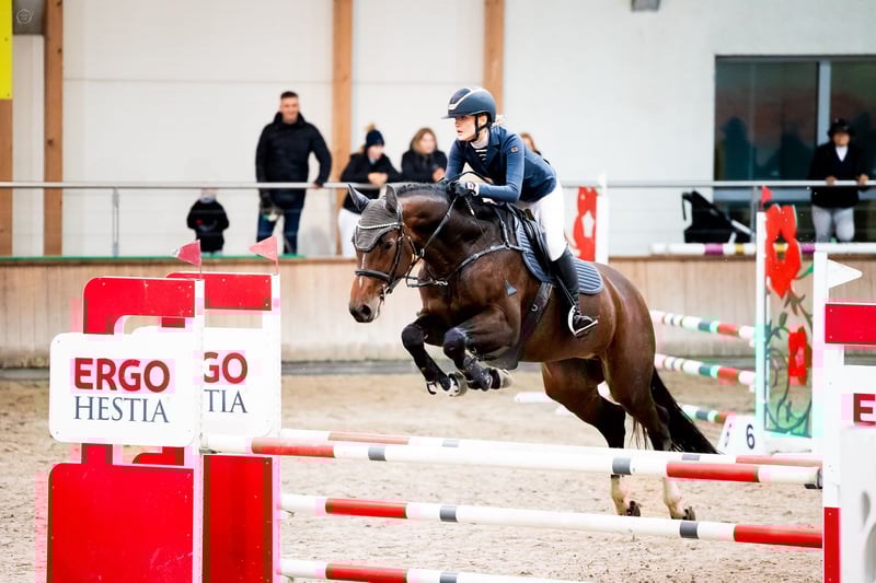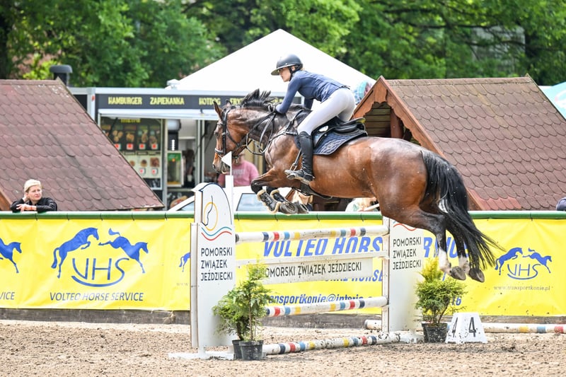 For sale is a beautiful Wielkopolska mare, born in 2016. She is a dark bay, standing at 16.1 hh. Excellent for show jumping, well-schooled in dressage. She can perform lateral movements, piaffe, passage, etc. Perfect for riders looking to introduce a horse to jumping classes up to 120 cm, with potential for more. Currently ridden by an amateur junior rider, whom she has helped transition from ponies to competing in novice level show jumping. She has experience in CSI-level competitions. As a young mare, she earned medals in free jumping and mare’s endurance tests. Please contact us to arrange a viewing and a test ride!
