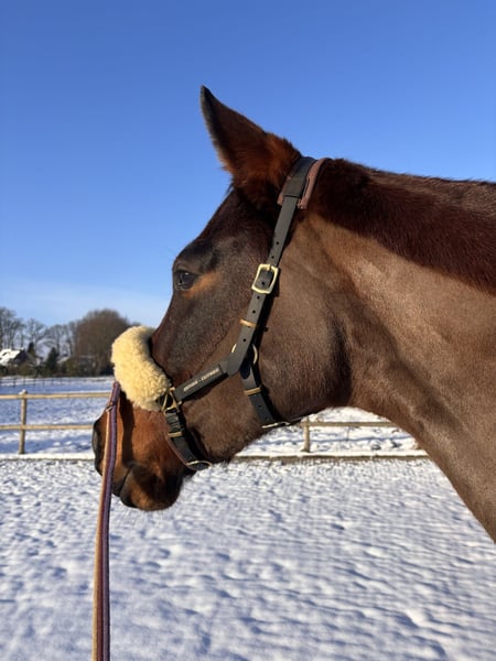 Zum Verkauf steht eine sportliche braune Stute (2017), ca. 168 cm groß. Die 8-jährige Stute ist dressurmäßig solide gearbeitet und kennt das Reiten auf verschiedenen Außenplätzen sowie in der Halle. Ausritte in der Gruppe meistert sie ebenfalls problemlos. Derzeit wird sie in der Working Equitation gearbeitet und zeigt sich dabei sehr motiviert, aufmerksam und konzentriert. An den Hindernissen geht sie interessiert und mit Freude an die Aufgaben heran. Im Umgang ist sie brav, unter dem Reiter jedoch sensibel, weshalb sie in sichere, fein reitende Hände gehört. Sie eignet sich sowohl für den Freizeitbereich als auch für den Turniereinsatz. In der Herde ist sie ranghoch und kennt sowohl reine Stutenherden als auch gemischte Herden. Für ihr Wohlbefinden wünscht sie sich eine große Herde mit ganztägigem Auslauf. Sie ist gesund, regelmäßig geimpft und entwurmt und wird alle 8 Wochen dem Schmied vorgestellt. Es besteht eine Allergie, die ausschließlich im Frühjahr auftritt. Eingetragen ist sie als Großpferd ohne Rassebezeichnung, eine Abstammung ist daher nicht bekannt. Bei ernsthaftem Interesse bitten wir um Kontaktaufnahme mit vollständigem Namen.