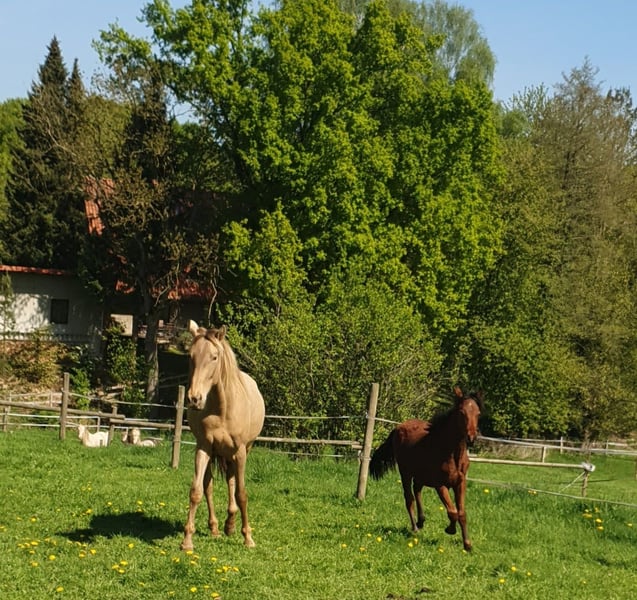 Young Azteca Stallion with Potential Seeks Loving Hands I am reluctantly selling my promising brown Azteca yearling stallion. This handsome young horse is a successful blend of PRE and Quarter Horse, which not only gives him a great appearance but also a lot of potential for the future. His good, expansive movements highlight his quality. He is growing up in a species-appropriate manner and is well mineralized. We see him as a talented partner for ambitious riders in working equitation or the upper leisure sector. Pepe is a little horse that quickly wins hearts with his curiosity and charming nature. If you are looking for a special young horse that wants to be nurtured with love and know-how, please feel free to contact me.