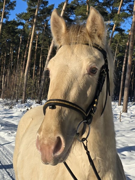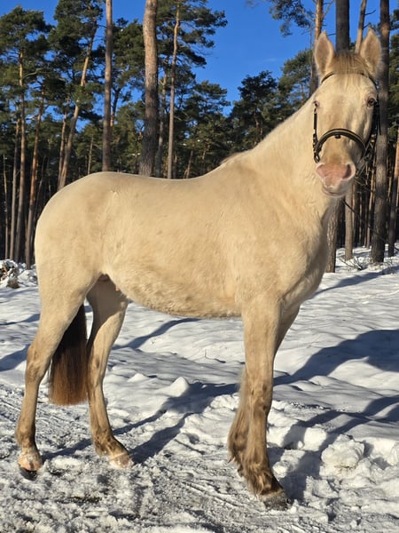 Der junge Mann deckt dieses Jahr erstmalig frei auf der Weide oder an der Hand im Natursprung. Voodoo Prinz hat aktuell ein Stockmaß von 1,44m und trägt die Farbe Classic Champagner welche er zu 50% vererbt. Seine Mutter ist ein PRE und sein Vater ein Paint Horse. Charakterlich ist er sehr verspielt, neugierig und menschenbezogen. Geht alleine ins Gelände und lässt sich überall anfassen. Er deckt ohne Schein. Bei Fragen etc. gerne anschreiben.