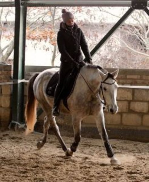 Freddie is a very kind and friendly horse. He came to me directly from his breeder and was started under saddle by me. His basic gaits are very light and elastic. Before being ridden, he received groundwork training based on the Parelli method, and later continued under saddle with classical French dressage. He is currently at a basic riding level – walks, trots, canters, and has already started working on lateral movements. Due to his breed, he is highly intelligent and learns quickly. With me, he has also been introduced to some Working Equitation obstacles. He would make a perfect partner for a dedicated hobby rider or someone who values groundwork and classical training methods. He currently lives in an open herd, but spent the winter evenings in a box.