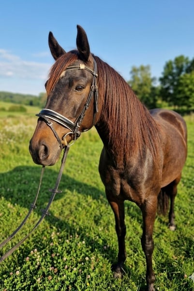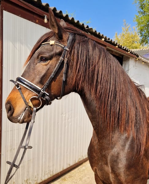 A true heart horse, our Mercedes! Are you looking for a real “fun machine” that will stand by your side through thick and thin? Our beautiful Mercedes, a 16.1 hh Azteka cross mare, combines experience with an absolutely honest character. She is the perfect mix for riders seeking a brave partner who is neither lazy nor overly spooky. What sets her apart is her refined training: she responds perfectly to voice commands and remains really cool in the terrain when faced with new situations! Cross a field? No problem! Climb stairs? Easy! Descend a steep slope? Let’s do it! She’s a real *fun machine!* Whether it’s a brave canter across stubble fields or a relaxed ride on a long rein – Mercedes is always well-behaved, fearless, and up for any adventure. Her sensitive side only shows when she’s around men, especially if they’re holding sticks – here she needs a moment to trust, but she remains always manageable. She is in excellent health, absolutely compatible with other horses, and simply a sweetheart in everyday handling. If you’re looking for an uncomplicated, strong partner ready for shared adventures, she’s looking forward to your visit! All information without guarantee. No liens, no installment plans // transport available anywhere! Trial ride Mon-Fri €25 Sat-Sun/Public holidays €30 Showings (always) €10 Feel free to contact us! 01703718888