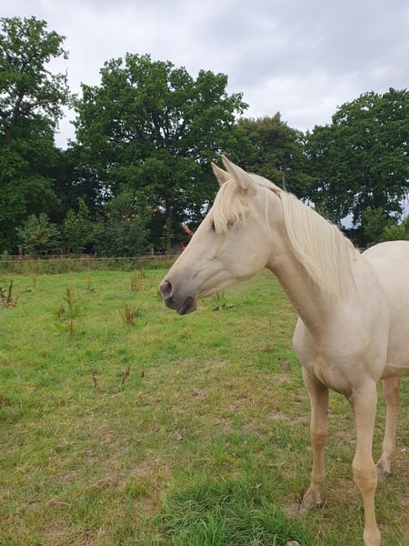Unsere tolle, einjährige Azteca Stute aus eigener Zucht sucht ein 5* zu Hause. Chexy überzeugt nicht nur durch ihre Schönheit, sondern auch durch ihr wunderbar ausgeglichenes und ruhiges Wesen. Sie ist super mutig, neugierig und sehr am Menschen interessiert. Dazu total unerschrocken und einfach nur lieb im Umgang. Ihre Neugier und ihre sanfte Art machen sie zu einem idealen zukünftigen Partner für alle Sparten der Freizeitreiterei, Westernklassen oder Working Equitation. Sie hat das Potenzial, in vielen Bereichen zu glänzen. Chexy ist es gewohnt, in einer Herde aufzuwachsen, ist bestens sozialisiert und mineralisiert. Boxenhaltung kennt sie nicht und dorthin wird sie auch nicht abgegeben. Natürlich ist sie schmiede- und verladefromm und kennt bereits grundlegende Bodenarbeit. Wir wünschen uns für sie einen Menschen, der Zeit mit ihr verbringt und ihr Potenzial voll ausschöpft. Sie bekommt Papiere der AAHIA und hat natürlich einen Equidenpass. Eckdaten: Rasse: Azteca Geschlecht: Stute Alter: 1 Jahr Farbe: Palomino Charakter: Ruhig, ausgeglichen, neugierig, unerschrocken Enfmaß: ca 1,58 m Die letzten beiden Fotos zeigen die Elterntiere. Mutter PRE, Vater QH mit altem Blut (Doc Chex)