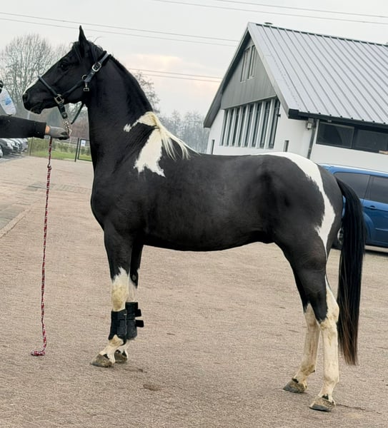 Zum Verkauf steht ein im April 23 geborener Barockpinto mit einer derzeitigen Größe von 160cm. Geschätztes Endmass ca 165cm. Er ist sehr brav an der Hand und bei der Arbeit. Aufgrund seiner guten Qualität steht er derzeit in den Niederlanden zur Körvorbereitung. Besichtigung auf Anfrage möglich.