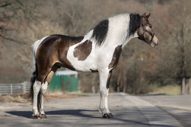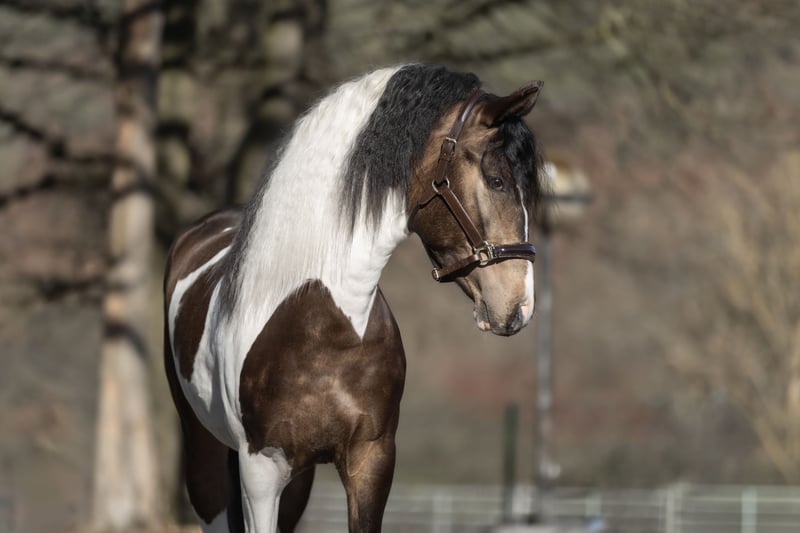 Dieser außergewöhnlich hübsche Scheckwallach „Kolor“, geboren im Februar 2023, begeistert mit seinem barocken Erscheinungsbild, harmonischem Körperbau und einem aktuellen Stockmaß von ca. 1,55 m. Kolor vereint Ausdruck, Qualität und einen liebenswerten Charakter in einem Gesamtpaket, dass Herzen höherschlagen lässt. Im täglichen Umgang zeigt er sich brav und menschenbezogen. Seine feine Kommunikation macht ihn zu einem angenehmen Partner, der stets bemüht ist, alles richtig zu machen. Er überzeugt durch seine ruhige Art und seine positive Einstellung zur Arbeit. Altersentsprechend wird er aktuell schonend und in Ruhe am Boden ausgebildet. Kolor lernt alles, was ihn später auf seine Zukunft als Reit- und Fahrpferd vorbereitet. Dabei zeigt er sich aufmerksam, lernwillig und nervenstark. Mit seiner auffälligen Scheckzeichnung und seinem barocken Typ ist er nicht nur ein absoluter Hingucker, sondern bringt auch beste Voraussetzungen für eine vielseitige Zukunft mit. Ein junger unerschrockener Rohdiamant für Menschen, die ein besonderes Pferd mit Ausstrahlung und bestem Charakter suchen. Kolor steht in 53578 Windhagen-Rederscheid. Bei Interesse oder Fragen freuen wir uns auf eine Nachricht. Weitere Bilder und Videos können gerne per WhatsApp +4915901725817 versendet werden Ein Kennenlernen ist nahezu jederzeit möglich. Für das Vorstellen des Wallachs nehmen wir eine Pauschale von 30€. Die Möglichkeit, sich ihr Traumpferd nachhause transportieren zu lassen besteht natürlich auch.