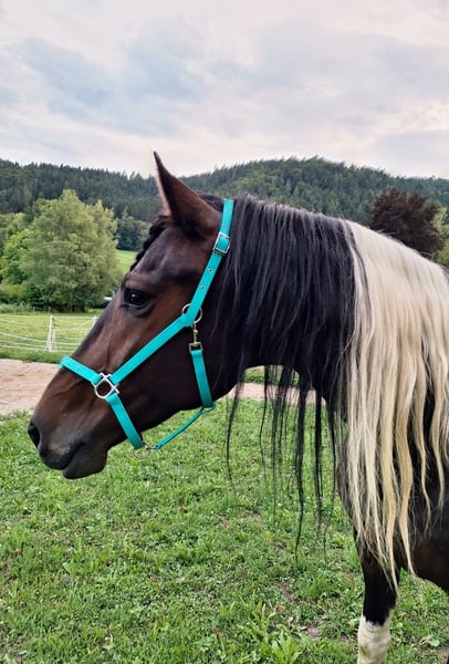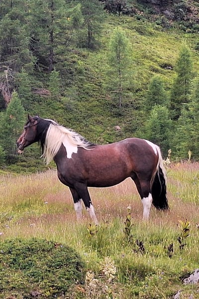 Verkaufe meinen selbstgezogenen Barockpintowallach Ikarus. Er ist am 16.4.2018 bei mir am Hof geboren und hat jetzt ein Stockmaß von ca 1.67cm. Seine Mutter eine PRE Stute Malaya IV und sein Vater Johannes BP09 (Friese/Warmblut). Im Jahr 2018 erreichte er bei der Barockpinto Zuchtschau Österreich die 1ste Premie, 2019 folgte die zweite 1ste Premie und 2021wurde Ikarus erfolgreich zum Deckhengst gekört. Er wurde nach zwei Jahren Deckeinsatz kastriert, danach wurde er als Freizeitpferd geritten, auch ein wenig Freiheitsdressur und kleine Zirkuslektionen beherrscht er. Ikarus ist ein sehr menschenbezogenes und sensibles Pferd, daher braucht er jemanden mit Pferdeerfahrung, Geduld, Ruhe und fairen Umgang. Er ist kein Anfängerpferd!!! Hufschmied und Hänger fahren stellen kein Problem für ihn dar. Ikarus ist fein zu reiten, und durch diese tolle Anparrung verfügt er über schöne Gänge und auch sein Körperbau ist sehr harmonisch. Vor ca. 3 Jahren wurde Ikarus als leichter Allergiker eingestuft, er lebt bei mir im Offenstall mit seinem Norikerfreund, und im Sommer auf Weiden oder Almen. Seit 1 1/2 Jahren merkt man von seiner Allergie sehr wenig, bis gar nicvht mehr. Also wer ein Pferd mit Fokus auf Exterieur, Bewegung und Charakter sucht, ist bei diesem Prachtkerl genau richtig.