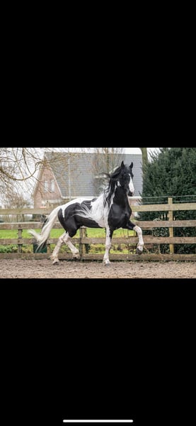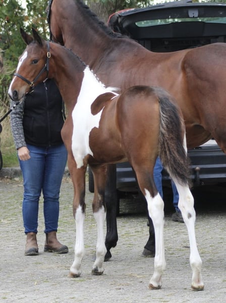 Dopo aver riflettuto a lungo, ho deciso con grande difficoltà di mettere in vendita questa splendida puledra di un anno! Sua madre è una cavalla KWPN di: United x Hierrach! Suo padre è il bellissimo stallone: Homozygote Daimond (ora Z dressage). Bibi, come la chiamiamo qui, non si impressiona facilmente e viene subito da te quando è nel pascolo. È sociale nel gruppo. È abituata al maniscalco, al trailer, ai cani, ai bambini, ecc. Lo scorso anno, durante la selezione, ha ricevuto un bel primo premio e si è classificata terza nella ring del campionato.