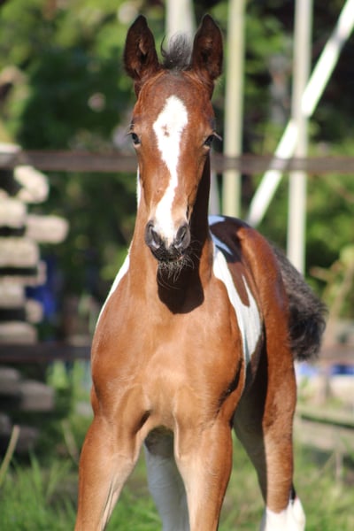 Po długim namyśle z wielkim żalem postanowiłem oddać piękną roczną klacz! Jej matka to klacz KWPN o rodowodzie United x Hierrach! Ojcem jest wspaniały ogier Homozygoot Daimond (obecnie Z dressage). Bibi, jak nazywamy tę roczną klacz, niełatwo się poddaje wrażeniom, od razu podchodzi do Ciebie na pastwisku. Jest towarzyska w stadzie. Przyzwyczajona do czyszczenia kopyt, przyczepy, psów, dzieci i innych codziennych sytuacji. W zeszłym roku na aukcji uzyskała piękną pierwszą premię i zajęła trzecie miejsce w ringach konkursowych.