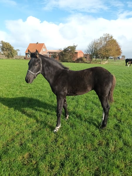 Foal born on June 25, 2025. Name: Phaedra fan 'e Witewei Mother: Alemke fan Blitha (Friesian), height 16.8 hh Sire: Wobke 403 x Jasper 366 (see document) Registered in the Barock Pinto studbook Father: Wodan Ster 82, height 16.8 hh Registered in the Barock Pinto studbook Champion as of February 20, 2024 The foal has a microchip. Barock Pinto studbook papers and passport are being processed.