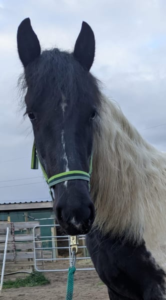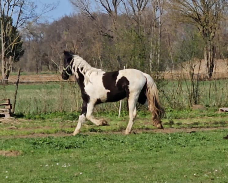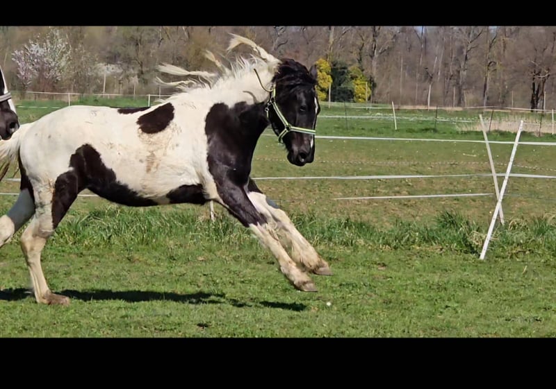 Chicke, une jument baroque de Pinto âgée de 2 ans, née en juillet 2024, à vendre.