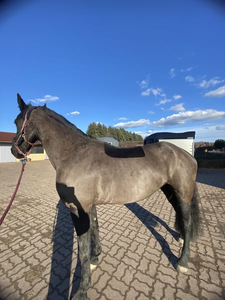Mit schwerem Herzen muss ich meine Traumstute verkaufen. Die Stute hat einen etwas schwierigen Charakter, ist sehr energisch und kräftig, daher eignet sie sich am besten für eine erfahrene Reiterin oder einen erfahrenen Reiter. Montana ist 4 Jahre alt, bereits in den drei Grundgangarten ausgebildet, hat unter dem Sattel einige Sprünge absolviert und im Longierzirkel wurde sie bis 120 cm geritten. Ein tolles Pferd für einen Amateur, der in den kleinen Springsport einsteigen möchte. Im Pass ist die Rasse als AES eingetragen, sie besitzt ein Zertifikat als Barock Pinto. Nie verletzt oder krank gewesen. Sie akzeptiert Kinder und Hunde. Für Videos und weitere Informationen sende bitte eine private Nachricht. Für eine sehr entschlossene Person ist der Preis verhandelbar.