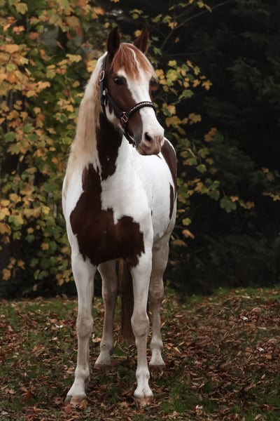 Enchanting Baroque Pinto Mare – Perfect for Leisure Riding! This charming mare, dressed in a stylish coat, impresses with her friendly temperament and her strong bond with humans. Well-trained and ridden, she consistently shows a willingness to please. She is the ideal companion for varied trail rides and relaxed leisure hours, already handling these with ease and providing a confident, secure feeling. Price will increase with further training. If you're interested or would like more information, I am happy to assist. A personal meeting is highly recommended! Videos can be provided upon request via the "Photos & Videos" tab. The mare is barefoot, has excellent hoof quality, and is accustomed to children and dogs. She is fully vaccinated and dewormed. Pre-purchase exam possible locally.