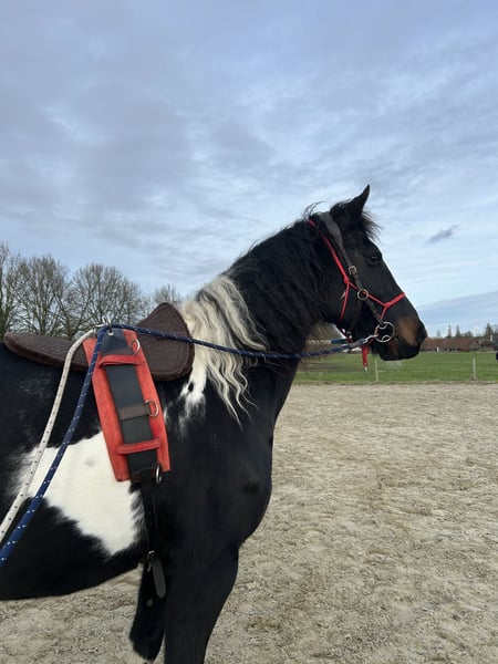✨ Barock Pinto merrie (8 jaar oud, 2017)✨ Haribo is een mooie, lieve en eerlijke merrie. Ze is PSSM-vrij en ook zeer geschikt voor de fokkerij. Haribo is opgeleid in het werken aan de hand, grondwerk en dubbele lijnen. Ze is ingereden en mee op buitenrit geweest, maar onder het zadel nog wat onervaren. Ze is gevoelig, leergierig en heeft zichtbaar plezier in het werken in zijgangen. In haar werk heeft ze baat bij rust, duidelijkheid en een zelfverzekerde, consequente begeleider die haar vertrouwen kan geven. Altijd netjes onderhouden: ✔ Afgelopen 1,5 jaar elke 3 maanden behandeld door de dierenarts (osteopathie, acupunctuur, cranio sacraal) ✔ Elke 6 weken bekapt door hoefspecialist ✔ Tandarts en vaccinaties op orde ✔ Gevaccineerd tegen West Nijl Ze mag nu naar een fijne plek waar ze verder mag groeien❤️ Vp: 8000 📩 Stuur gerust een bericht voor meer info
