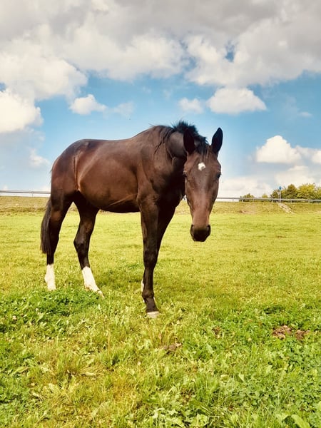 Zweieinhalbjähriger (noch) Hengst zu verkaufen (geboren 1.4.2023) , Mutterstute A Dressur platziert - mit Potenzial für das große Viereck. Valentin wurde als Fohlen prämiert. Er zeigt sich sehr menschenbezogen, sehr lieb im Umgang und wächst aktuell im Herdenverband auf. Hier zeigt er sich ebenfalls sehr unkompliziert. Der aktuelle Aufzuchtplatz kann übernommen werden. Ergebnisse der Fohlenpräsentation siehe Anhang: Typ 8.0 / Fundament 7.5 / Schwung 8.5 / Schritt 8.5 / Gesamt: 41.0 / Prämienfohlen Mehr Infos ausschließlich telefonisch! Schriftliche Nachrichten werden nicht beantwortet. 0176/21305781