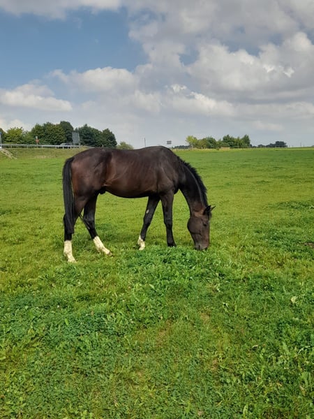 Tweeënhalfjarige (nog) hengst te koop (geboren op 1 april 2023), moeder merrie A-dressuur geplaatst - met potentieel voor de grote ring. Valentin werd als veulen premium geklasseerd. Hij is zeer mensgericht, heel lief in de omgang en groeit momenteel op in een kudde. Hier toont hij zich ook zeer ongecompliceerd. De huidige opfokplek kan overgenomen worden. Voor meer informatie uitsluitend telefonisch! Schriftelijke berichten worden niet beantwoord. 0176/21305781