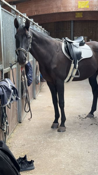 Dino is a 14-year-old Bavarian warmblood gelding. Due to a lack of time, which prevents me from giving him the attention he deserves, I am looking to place Dino in good hands. He has a height of approximately 1.78 meters (about 16.1 hh) and is well-suited for larger riders, but he can also be comfortably ridden by less experienced or smaller riders. Initially, Dino needs some time to get used to new people, but he does not show any bad habits beyond normal testing behavior. Once he has settled in, he is a reliable partner who will loyally accompany you. He has been ridden mainly for leisure, with a focus on dressage work, but small jumps and riding out with other horses are no problem. Dino does not exhibit any vices such as bucking, rearing, or kicking. Currently, he is kept in box stabling with daily turnout and a paddock walk, sharing a paddock with a mare. For further questions, please feel free to contact me. No urgent sale, only to suitable, experienced riders!