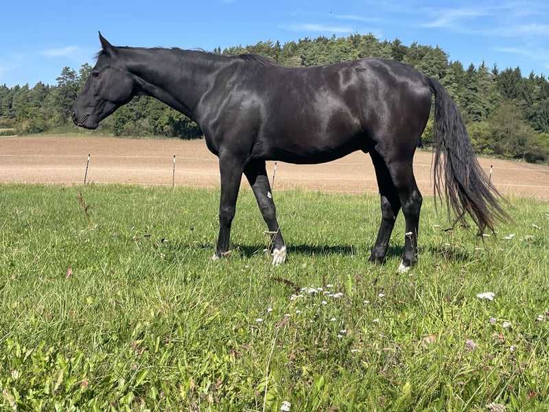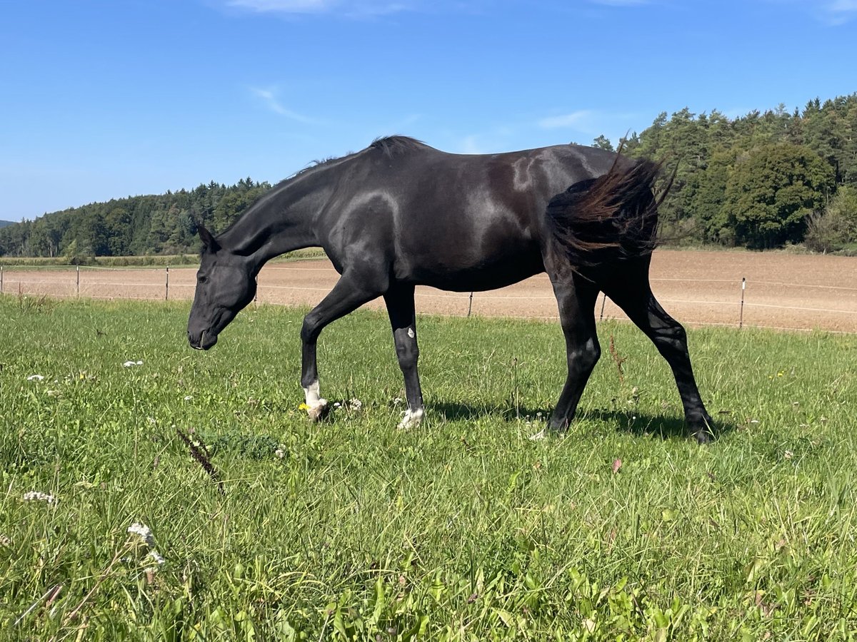 A promising Bavarian Warmblood gelding is for sale. The horse impresses with its elegant appearance and appealing movement. His sire is Dimaggio Black, stationed at Sprehe Stud. The dam, Mariechen, is an elite mare (StPrSt) from Abanos x Matcho AA x Tannenberg. She competed successfully in sport up to medium level dressage. She also produced a licensed stallion, Un Amore. Another son by Don Diamond was approved for breeding. Most recently, she foaled a daughter by Fabritius, who was also awarded the state premium mare title. The young gelding is friendly in manner, healthy, and well socialized. He is ideally suited for ambitious riders seeking a promising young dressage prospect. Available for caring hands. The gelding can remain here for further development and upbringing. Please contact me for more information or to arrange a viewing. Visits are welcome by appointment.