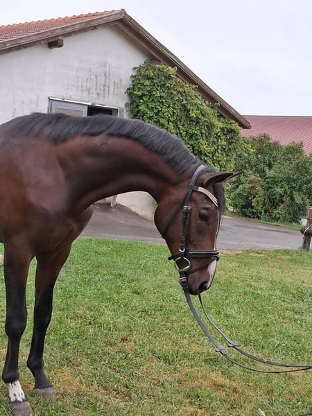D'Artagnon - Ausnahmeerscheinung in dunkler Jacke aus erfahrener Züchterhand! Abstammend von Decurio x Don Diamond/Rubinstein mit enormer Bewegung lässt der 3 jährige Schönling die Dressureiter-Herzen höher schlagen! Langbeinig, mit toller Halsung und ausdruckstarkem Kopf ist er jetzt schon eine imposante Erscheinung, und wird ein echter Hingucker im Viereck. Sein aktuelles Stockmaß beträgt 1,66m, steht noch im Wachstum, wird groß. Aktuell wird er schonend anlongiert. Sehr menschenbezogen und brav im Umgang, familiär aufgewachsen. Sein Vater Decurio von Desperados/ De Niro/ Rotspon ist mittlerweile in den Top Ten der deutschen Dressurhengste angekommen. D'Artagnons Mutter Rhiannon von Don Diamond x Rubinstein war selbst bis M-Dressur ausgebildet, brav und außerordentlich sitzbequem mit großer Galoppade, weich wie auf Wolken. Dies gibt sie an ihre Nachkommen weiter, D'Artagnon's älterer Bruder, nun im Besitz einer jungen Grand-Prix-Reiterin, hat ebenso diese weichen Gänge und Rittigkeit geerbt, läuft von alleine Anlehnung in Selbsthaltung. Aus dem Stutenstamm sind bereits erfolgreiche Dressurpferde entsprungen, u.a. bis Grand Prix. Wenn Sie D'Artagnon kennenlernen wollen, bitte melden unter 01728159998 (WhatsApp)