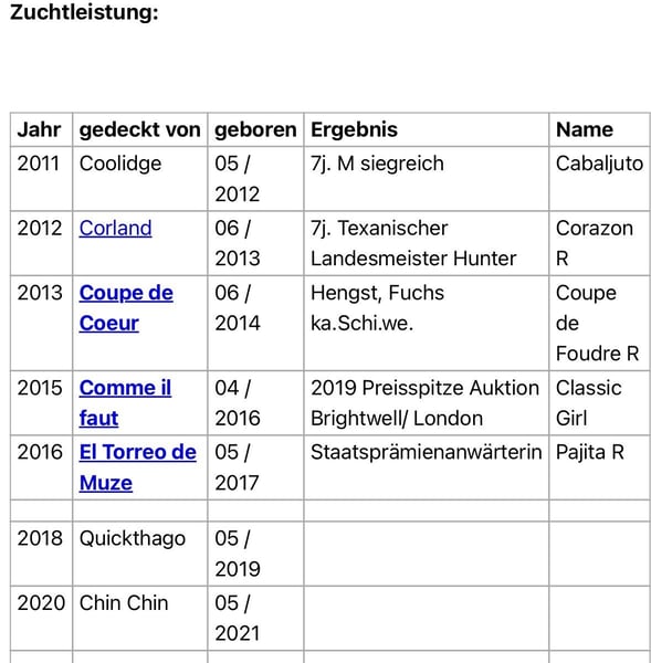 Na sprzedaż dostępny jest ten uroczy ogier. Chin urodził się w 2021 roku i ma około 170 cm wzrostu. Jego życzliwa, spokojna i pełna energii osobowość przekonuje każdego. Od roku jest pod moją opieką i mieliśmy już okazję wiele razem przeżyć. Na przejażdżkach, takich jak na Arberze, treningach na zewnątrz, konkursach skoków luzem, skokach, treningach bez ogłowia itp., można polegać na Chinie, mimo jego młodego wieku. Szukamy dla Chin domu, w którym będzie kochany i w którym będzie mógł zostać na zawsze. Jest całkowicie towarzyski w stadzie i nie wykazuje żadnych niepożądanych zachowań. Obecnie nocuje w boksie, a w ciągu dnia na pastwisku/paddocku, ale chętnie rozważę również opcję wolnej stajni. Trzylatek, bez żadnych problemów zdrowotnych. Chin Up R pochodzi z linii Push Up, wywodzi się z rodziny klaczy 349 (Faschingswerk v. Faschist II – Foliant – Jasperding – Prinz Thor – Isus), z której pochodzą takie ogiery jak Gardeulan I i II (Ldb Celle), będący pełnymi braćmi prababki „Playmate”, Grandus (PB Westf), Grannus First Class (PB Bay, USA), Hohenfels (PB Westf), Santino (Ldb Celle), Wengo (PB BEL) oraz międzynarodowo utytułowane konie skokowe Don Plaisir / F. Sloothaak i Cool-Man / J. Winter. Jego ojciec, Chin Chin, jest wybitnym koniem holsztyńskim z rocznika 1978, który dzięki imponującej linii potomstwa wyrobił sobie silną pozycję w hodowli koni skokowych. Jako syn Constant i Larese łączy najlepsze cechy obu rodziców i wydał na świat ponad 500 potomków. Wśród jego potomków wyróżniają się m.in. Arezzo VDL, klacz z licznymi zwycięstwami i ponad 60 miejscami na podium, oraz Chin Champ, odnoszący sukcesy na wielu międzynarodowych konkursach skoków, a także Zapatero VDL, z ponad 30 miejscami na podium, co świadczy o wyjątkowej linii genetycznej Chin China. W razie zainteresowania proszę o kontakt: 0151 55796957 Filmy dostępne na życzenie.