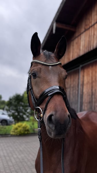 „Emiliano“ ist ein 6-jähriger Wallach mit freundlichem Wesen und sehr guten Grundgangarten, insbesondere mit einer kraftvollen, gut untertretenden Hinterhand, die ihm eine gute Perspektive für die weitere Ausbildung bietet. Er ist im täglichen Umgang absolut brav – ob beim Putzen, Führen, Verladen oder Hufschmied – und zeigt sich stets gelassen und menschenbezogen. Wir suchen einen erfahrenen, geduldigen Reiter der ihn konsequent, ruhig und mit Verständnis weiter fördert - nicht Anfänger geeignet.