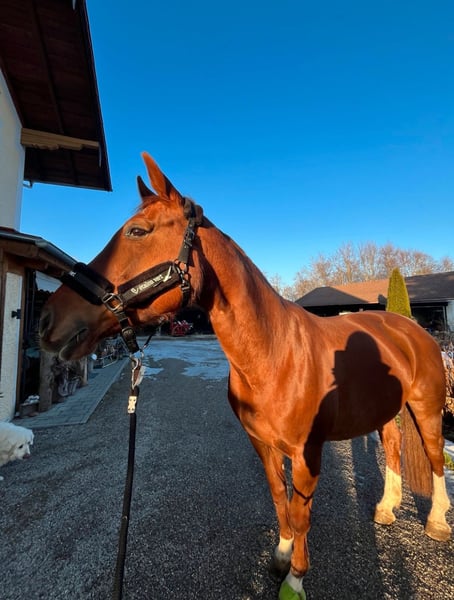 For personal reasons, I am selling my nearly 13-year-old Bavarian Warmblood mare, Nelana Bella Grandi. She stands approximately 16.1 hh. She is trained in dressage and as a carriage horse. Nelana is a sensitive mare that requires a firm but gentle hand. She is calm and manageable in the field, but she needs to trust her rider. Currently, she is stabled in an open stable in Traunstein. She is accustomed to trailer transport and hacking out. For me, space comes before price. The tack is included in the price. A fee of €25 applies for a trial ride, which will be deducted from the purchase price.