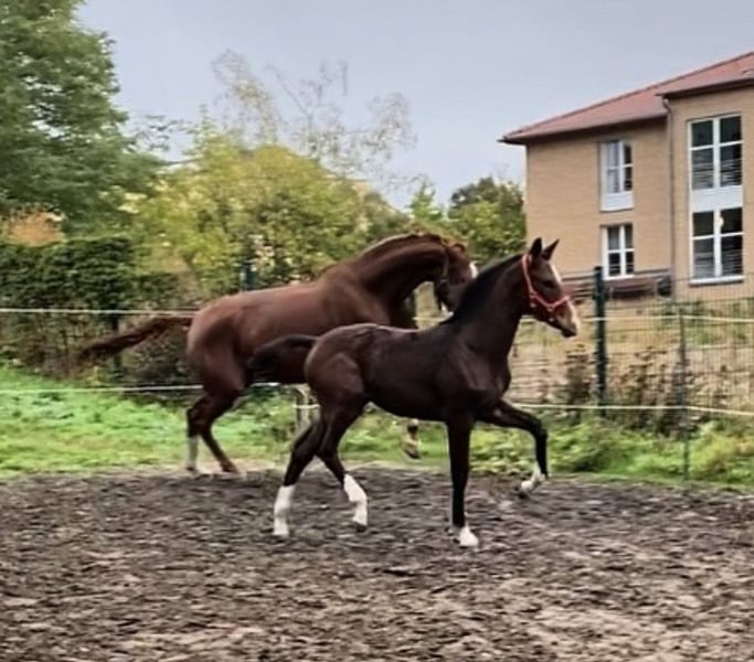 Schweren Herzens suche ich für meine Hilde(früher war sie auch mal wild😁) ein Traumzuhause mit Familienanschluss. Eigentlich heißt sie L’ Amour und war mit mir bis M-Dressur erfolgreich! Sie ist kinderleicht zu reiten und brav, allerdings nicht für reine Anfänger geeignet, da sie schon mal testet… Sie liebt ihre Bezugspersonen und ist sehr verkuschelt. Aufgrund von mehreren Befunden ist sie nicht mehr sportlich einsetzbar, aber durchaus noch als Lehrpferd und Freizeitpartner. Auch im Gelände ist sie super brav. Sie hatte bisher drei Fohlen, die alle super schick und bewegungsstark sind. Die fünfjährige befindet sich auf dem Weg ins große Viereck. Hilde sollte nicht komplett im Offenstall oder nur auf 24h-Koppel stehen, da sie zumindest nachts ein Stubenhocker ist. Sie braucht immer die gleichen Abläufe, sonst nimmt sie gleich Gewicht ab und bekommt Magenprobleme. Ansonsten ist sie sehr sozial und natürlich Schmiede- und Verlade-Profi! Hilde wird nur in die allerbesten Hände abgegeben!!! Ich habe leider keine Zeit für zwei Pferde und für die Rente ist sie noch zu jung. Bei Interesse oder weiteren Fragen stehe ich gerne zur Verfügung. Besichtigung und Probereiten(30€) nach Vereinbarung möglich.