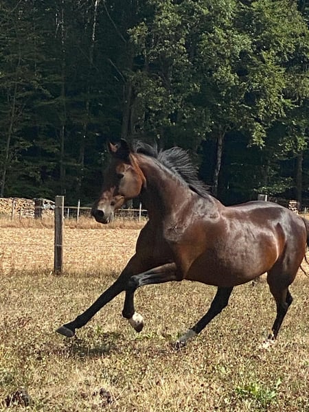Nach langem Hin und Her und einer schweren Entscheidung möchte ich meine, gerade 19 Jahre alt gewordene, Stute als Freizeitpferd und nur in beste Hände abgeben. Auf dem Platz und auf der Koppel gebisslos geritten. Im Gelände wurde sie mit Gebiss geritten Kann im Gelände alleine und in der Gruppe geritten werden. Braucht im Gelände und im Galopp einen sicheren Reiter. Ist kein Pferd für Anfänger. Koppt beim Satteln etwas! Vom Boden aus gearbeitet sowohl im Horsemanchip als in der Freiarbeit, Zirensik (Lektionen wie Spanischer Gruß, Liegen, Kopf schüttel, Flemmen,...) und die anfänge der Handarbeit (Seitengänge, übertreten an der Hand) Sie einen tollen Charakter und lernt schnell, ist verschmust und arbeitswillig. Braucht eine Person der ihr Grenzen zeigt und Sicherheit gibt. Schmiedefromm und beim Tierarzt lieb. Steht seit 6 Jahren Barhuf, wurde beim Vorbesitzer beschlagen. Steht im Sommer auf der Koppel und im Winter auf dem Paddock. Sie ist herdenverträglich und steht ganzjährig in der Herde im mittleren Rang Aktuell nicht trainiert müsste neu antrainiert werden! Bilder sind schon älter, 2-3 Jahre alt. Aktuelle Bilder können bei Interesse gerne geschickt werden. Nur in erfahrene Hände abzugeben. Bitte nur bei ernstgemeintem Interesse melden! AKU kann gerne gemacht werden. Equipment (Halfter, Führstrick, Trense und Sattel mit Schabracke) kann gerne dazu erworben werden bzw. Ist VB. Für mich gilt Platz vor Preis, da sie sehr zutraulich und mir ans Herz gewachsen ist. Verkaufen tue ich sie, da ich zuwenig Koppeln und Futter besitze. Zucht ist außerdem ausgeschlossen!