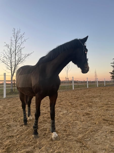 Poszukujemy nowego, kochającego i troskliwego domu dla naszej „Friedy”. Pomimo swojego wieku, Frieda jest w doskonałej formie i chętnie uczestniczy w różnych aktywnościach. Jej poziom jazdy w ujeżdżeniu sięga około poziomu A, a potrafi również wykonać pojedyncze lekcje na poziomie L. Skoki również sprawiają jej dużą radość, niezależnie od tego, czy są to trawersy, cavaletti czy skoki przez przeszkody. Jeździ również spokojnie i pewnie w terenie. Na co dzień jest dobrze wychowana i nie wykazuje żadnych niepożądanych zachowań. Ponieważ Frieda miała już okazję jeździć w szkoleniu (przez rok), jest przyzwyczajona do pracy z początkującymi jeźdźcami, również z użyciem kantarów. Nasza córka uczyła się na niej jeździć, osiągając w ciągu czterech lat poziom L. Poszukujemy dla niej kochającego domu. U nas spędza dni w małej, mieszanej stadzie, a noc w boksie. Preferujemy tylko boks z codziennym wybiegiem. Frieda zawsze daje swojemu jeźdźcowi poczucie bezpieczeństwa i pewności, mimo jej energicznego temperamentu. Przez cztery lata u nas nie była ani razu chora. W razie zainteresowania chętnie umówimy się na spotkanie i próbę jazdy. Poświęcamy na to czas i pobieramy opłatę w wysokości 45 €, która zostanie odliczona od ceny zakupu. W razie potrzeby można nabyć razem z nią siodło VS oraz siodło do ujeżdżenia.