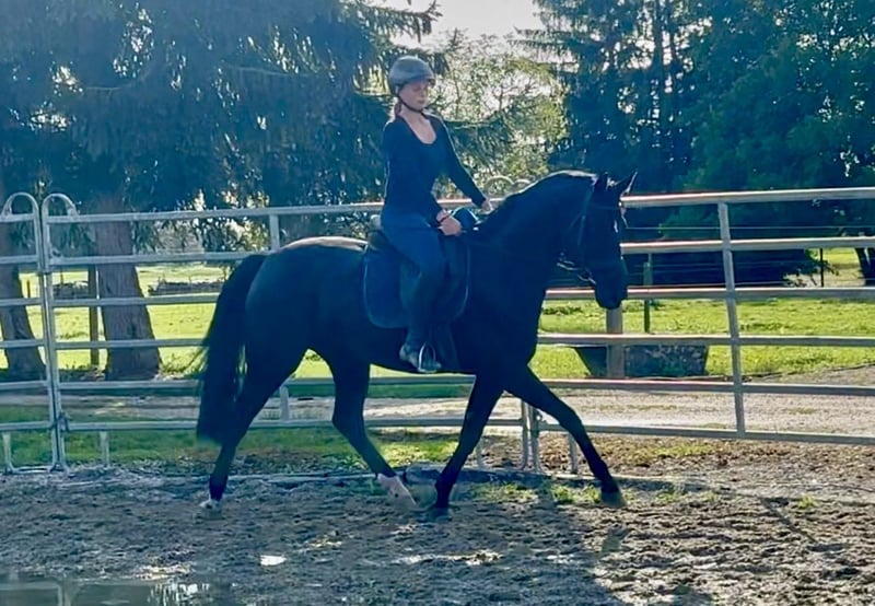Zum Verkauf steht eine edle Rappstute, geboren 2017, mit einem Stockmaß von ca. 160 cm. Sie überzeugt nicht nur durch ihre elegante Erscheinung, sondern auch durch ihren liebenswerten Charakter und ihre Rittigkeit. Abstammung: Finest x Ron William – eine vielversprechende Dressurlinie, die Leistungsbereitschaft und Exterieur vereint. Sie wurde sowohl in der Dressur als auch im Freizeitbereich solide ausgebildet und ist dabei stets motiviert, ausgeglichen und lernwillig. Durch ihr freundliches Wesen und ihre gute Mitarbeit eignet sie sich besonders gut für ambitionierte Junioren oder Umsteiger, die ein fein zu reitendes Pferd suchen. Ob auf dem Reitplatz oder in der Reithalle – sie macht immer eine gute Figur und bringt Freude in den Reitalltag. In fördernde, liebevolle Hände abzugeben. Bei Interesse oder weitere Fragen stehe ich Ihnen gerne zur Verfügung.