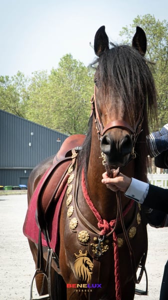 Hij combineert vuur en zachtheid op een bijzondere manier. KAFFAF is een paard uit de Atlas - traditioneel opgevoed - geslagen voor Fantasia en jachtrijden. Respectvol - reactief en vol moed. We hebben hem al onder het zadel gezien in een breed scala aan situaties - knallende ballonnen, vuur, energieke hengsten en wegverkeer. Het zou verkeerd zijn om hem te prijzen als een beginnerspaard - maar niettemin is het duidelijk dat zijn nobele uiterlijk zijn karakter in elke vorm weerspiegelt en dat hij ook een geweldige partner kan zijn voor jongere ruiters. Hij zou zijn macht nooit tegen zijn eigenaar keren, als hij hem eenmaal zijn hart had gegeven. Dit is ook de reden waarom we hem graag als fokker willen plaatsen ondanks zijn waarde en zijn succesvolle licenties. KAFFAF is geen paard dat niet goed overweg kan met de beperkte tijd van een fokker. Hij wil elke dag iets doen, exclusief contact met ZIJN familie. Een Berberpaard in het lichte cavalerietype, dat zich iets zelfverzekerder voelt bij vrouwtjes dan bij mannetjes. Hij behandelt kinderen met respect en zorg. Voor deze verschijning van een paard voor wie alles nog open is, wensen we een gevoelige ruiter die temperament waardeert en behoudt - vanwege zijn ervaringen onder het zadel in Marokko, moet er op de lange termijn aan zijn vrijlating worden gewerkt. Het kan betrouwbaar op hoofdstel worden gereden. Wie op dit paard zit, kan het vuur van Marokko voelen en moet het waarderen - niet bang zijn! Kaffaf is een ongelooflijk dapper, coöperatief paard dat elke dag zijn tijd en contact opeist en waardeert. Hij is erg sociaal, maar moet in handen zijn van hengsten-ervaren mensen en een familie die zijn temperament waardeert.