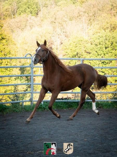 Ostatni import dobrze udokumentowanego pochodzenia miał miejsce bardzo dawno temu - jednak teraz "H" przekazał nam część swoich skarbów. Istnieje wiele imponderabiliów między wizją takiego importu a udaną realizacją. Elegancja i radość z ruchu - te cechy autentycznych Arabów-Berberów z krajów pochodzenia doskonale uosabia Ikli. Jest znacznie bardziej niezależna, bardziej dominująca w naturze i bardziej hojna w częściach ciała niż jej czysto berberyjscy krewni w stadninie koni Souinia - 25% zawartości arabskiej jest wyraźnie zdominowane przez berberyjski typ jej przodków! Jej ojciec Ragheb (ostatnie zdjęcie) jest niezwykle wybitnym i wielokrotnie nagradzanym ogierem reproduktorskim z państwowej hodowli koni i oprócz imponującego, zwartego wyglądu przekonuje swoją wolą biegania, oryginalnym typem, świeżą krwią i specjalnym kolorem pociągnięcia.
