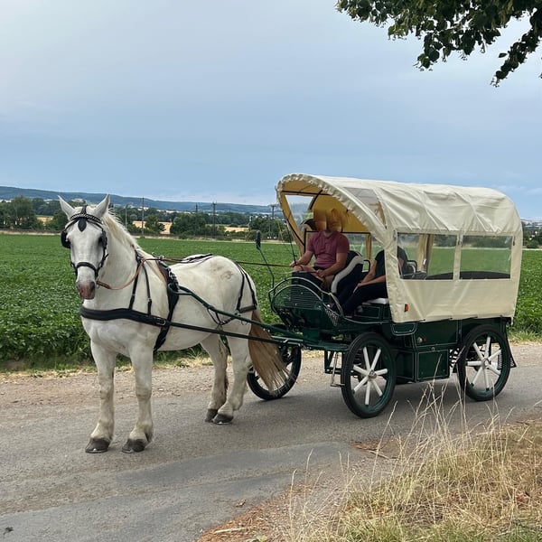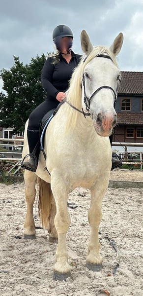 Jimi is a French Boulonnais draft horse with German pedigree documentation (horse passport with breed markings and transponder). His sire is the well-known Boulonnais stallion "Jumper" by Tamme Hanken – familiar to many from television. Born: June 21, 2016 Height: approximately 17.9 hh Vaccinated, dewormed, hoof care every six weeks, no CPL – he has no scratches or mud fever, and his legs are healthy. He has been barefoot for some time now. His eyes are sensitive to wind and tend to water slightly. Jimi has been ridden (see photos): < Dressage work in the riding arena < Trail riding < He also rides out in the field with a lead pony He is broken-in (see photos): < Driven single and pair < Out in the terrain and on the road Jimi also enjoys and is familiar with: < Groundwork < Round pen work < Lunging: walk, trot, canter, and halt are perfect on the lunge line < Desensitization exercises (leading with the horse) < Trailer loading: he stands very calmly and relaxed < Farrier work < Stable and pasture turnout 24/7, as well as open stall management Due to his size, Jimi is not suitable for beginner riders. He is eager to learn and strives to do everything correctly once he has gained trust. He is not a boring horse. We have decided to sell this lovely horse because I have to admit that I am simply too small (1.60 m / 45 kg) for the proper handling and riding of him. Therefore, I am looking for a more suitable owner who can form a better bond with him. If interested, please contact us: 0163 963 84 90