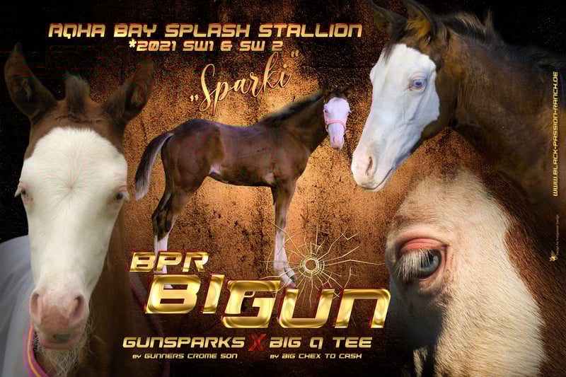 Sparki har ett mega dubbelregistrerat papper AQHA APHA och ett fenomenalt utseende! Det är SW 1 &; SW 2 testat. Egentligen ville vi behålla honom, men om hans kompis Bueno säljs, skulle han vara ensam här och det är därför han är till salu för tillfället. Sparki kommer från ett dotterbolag till BIG CHEX TO CASH och från Gunsparks, som är mycket framgångsrikt. Det är DNA gested och 4 panel N / N Herda / N Sparki är en mycket lätthanterlig pojke som alltid vill behaga och är bra på repet. Han växer upp på sommarbetet tillsammans med sin jämnåriga kompis Bueno och vår valack Peters Passion Dream. Sparki har redan en livförsäkring som kan tas över. Dispensering är nu möjlig med ReK, DQHA-pass och färsk vaccination, men han kan också fortsätta att födas upp. Duplicerade papper AQHA APHA
