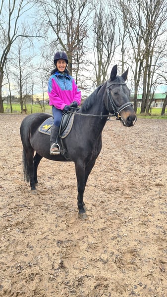 Mare for leisure riding. Well-behaved in the field. But can also do dressage and jumps.