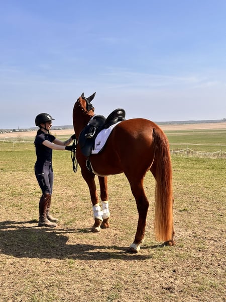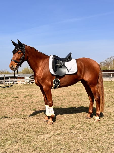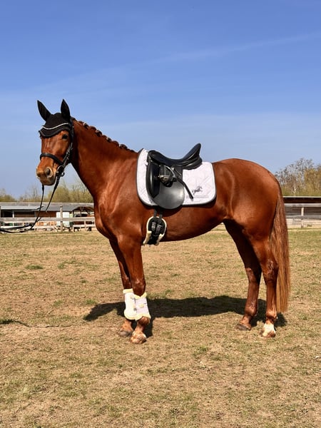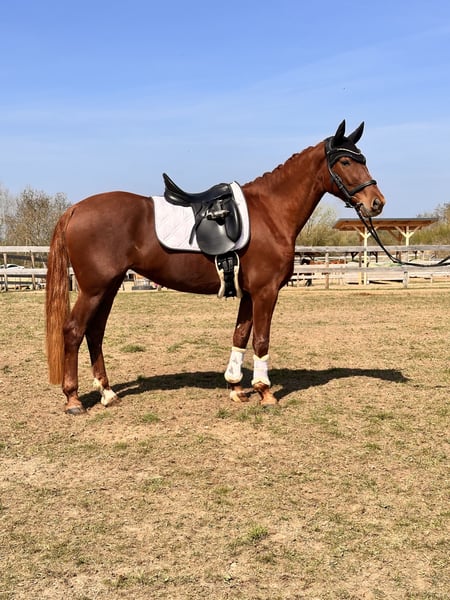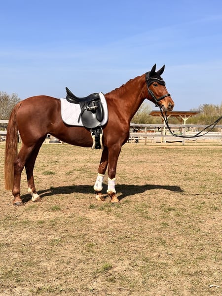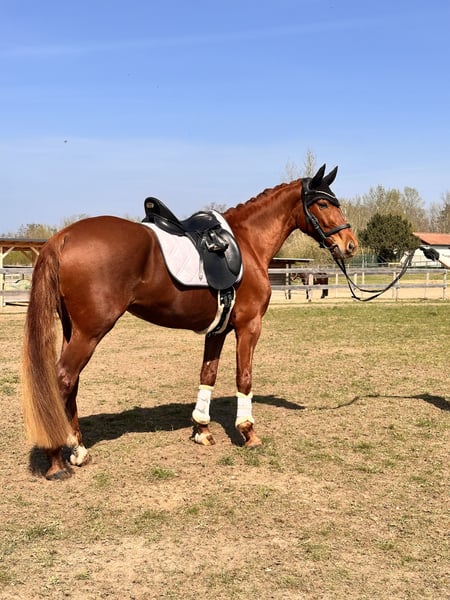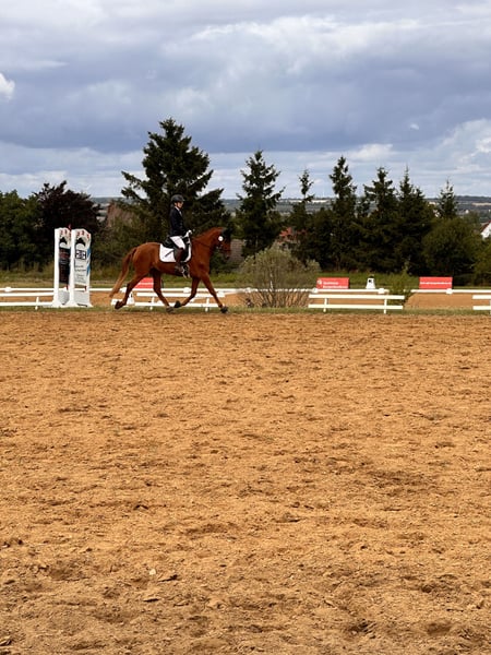 Vaiana 5 years old approximately 1.55m tall blacksmith and loading friendly - Shoed in front, barefoot behind - No health restrictions - Vaccinated and dewormed Vaiana has already placed in E dressage (WBO) and is now gaining her first experiences in A-level tests, as well as in dressage horse A. She impresses not only with her appearance but also with her lineage (Valverde x Donnerhall) and corresponding movement. Vaiana moves under the rider like a clockwork with diligence, expression, and enormous rideability. In handling and on the ground, she is a true treasure, showing herself to be fearless and affectionate. Anyone looking for a real ribbon pony with heart has found a dream horse here, also with potential for higher tasks. Accessories can be provided upon request and for an additional fee. If you are interested, we look forward to your call to discuss further details and arrange a viewing appointment. Please inquire only by phone at 0341/98995223 Mon. - Fri. from 09:00 - 18:00, Sat. from 09:00 - 15:00, Sunday closed Trial rides: Cost is €30 per horse (max. 2 riders). To confirm the appointment, please send your full name and address. Please note that on holidays, the trial ride costs €50. If the cancellation is not made 24 hours before the appointment, the fee will be charged. Presentation by our trainers, without trial riding, groundwork, etc. is €25 per horse. Purchase examinations, regardless of the extent, can be conducted by your or our veterinarian. We are also happy to assist with transport to the new home. www.deutsche-pferde-boerse.de More great horses are available in our sales stable. Some of our horses are also listed here in the sales portal and on our website. Height measurements are estimates by the seller and not precisely measured. These are not guaranteed characteristics; they are merely subjective impressions of the seller.