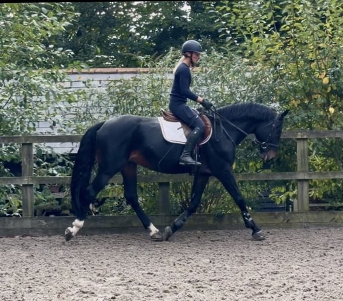 Beautiful 6 yo homebred stallion by Cornet de Semilly (Cornet Obolensky x Diamant de Semilly) x Indoctro x Indorado His dam jumped up to 1.30 and he has siblings competing at 1.40/1.45 He has been to a small number of shows starting this summer and is currently jumping Newcomers. He rides beautifully, does auto changes, is careful but also brave. Lovely flashy type with a big rangey canter. He stands around 166cm, is currently competed by a man but can be ridden by a girl, he is ridden at home by a petite lady rider. He is a super example of how a stallion should behave with the nicest temperament, is good to do in every way and quiet at shows in the warm up etc. He is quality enough for a professional to produce but easy enough for a good amateur. Open to any inspection