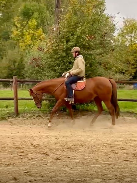 Mr Medicine ist ein wunderschöner, glänzender Rotfuchs mit Stammbaum, geboren am 23. April 2018. Er wurde hauptsächlich im Freizeitbereich geritten und beherrscht die drei Grundgangarten (Schritt, Trab und Galopp) schön und korrekt. Seine Vorbesitzerin hat auch mit ihm Springen gemacht. Aufgrund meines Alters und meiner Arbeit habe ich dieses jedoch nicht weiter verfolgt, aber mit ein wenig Auffrischung ist er sicherlich wieder springbereit. Mr Medicine ist ein ehrliches Pferd mit einem lebendigen und arbeitswilligen Charakter. Er liebt die Zusammenarbeit und lernt gerne dazu. Am besten kommt er bei einem selbstbewussten und konsequenten Reiter zur Geltung, der ihm Klarheit und Vertrauen vermittelt. In den richtigen Händen ist er ein angenehmer, lernfreudiger und begeisterter Partner, der mit Freude an die Arbeit geht. Im Umgang ist er höflich, genießt Aufmerksamkeit und steht ordentlich beim Hufschmied. Er wird inklusive kompletter Ausrüstung angeboten, bestehend aus (siehe Fotos): - Prestige-Sattel - Steigbügel und Riemen - Kandare - Satteldecke - Gurt Wenn Sie eigenes Equipment besitzen, kann dies selbstverständlich im Preisnachlass berücksichtigt werden. Mr Medicine wird verkauft, weil ich auf Reining/Western umgestiegen bin und inzwischen ein anderes Pferd gekauft habe, das besser zu dieser Disziplin passt. Probesprünge sind am besten am Samstag- oder Sonntagvormittag möglich. Bei Interesse können Sie gerne Kontakt aufnehmen unter 📩 f.de.paepe@telenet.be (Region: Erpe-Mere, Belgien).