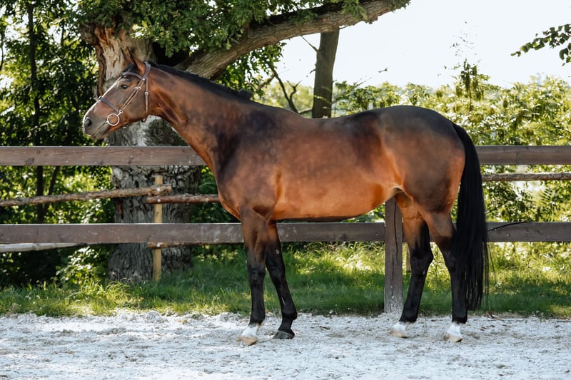 10-year-old mare with successes in competitions up to 140 cm. Fast, agile, and built for competition at the highest level - always supportive of the rider and excels in the arena. Easy to handle in daily care, exceptionally gentle and sociable, with an excellent character. An ideal partner for both a child or beginner rider, as well as for further sporting development.