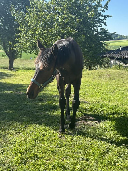 Amicelli ist ein langbeiniger Wallach mit sehr guter Springabstammung. Er kennt das Fohlen-ABC und ist sehr verschmußt. Auch Landmaschinen und Kinder ist er gewohnt. In der Herde ist total unkompliziert und eher rangniedrig Platz vor Preis.