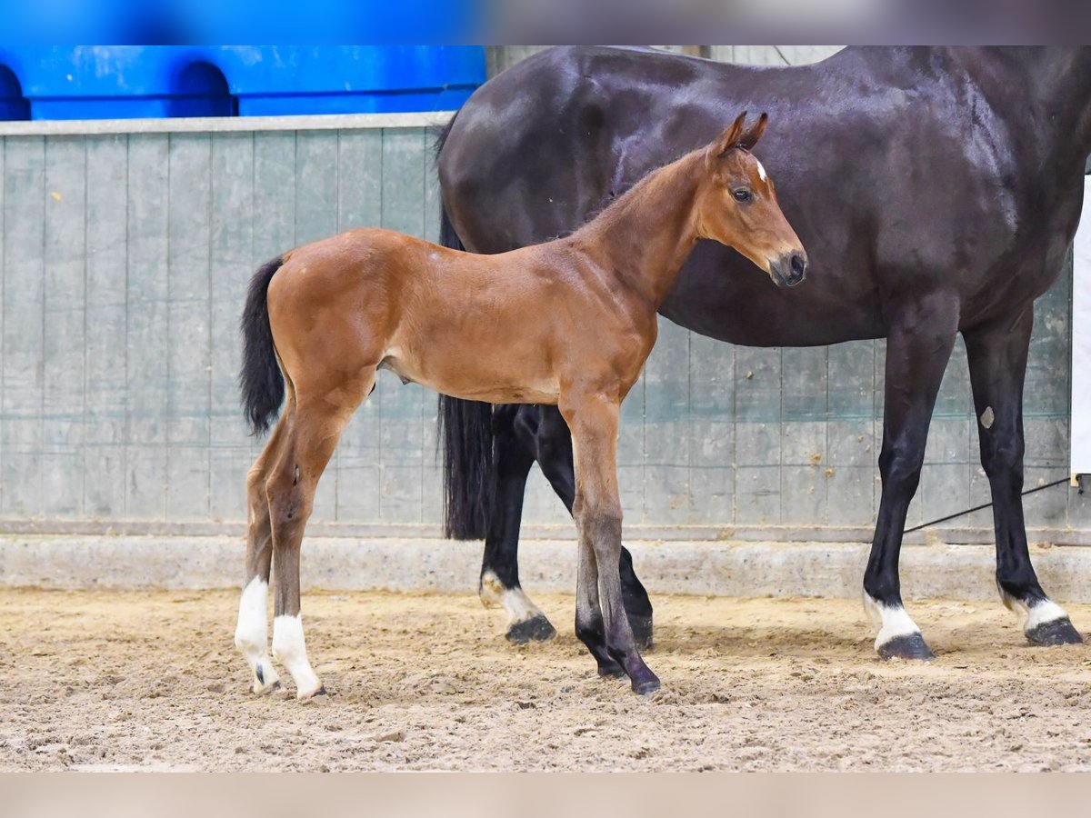 A very elegant colt from a top damline. Mother Dubai is the sister of Dark Chocolate (level 1.60 m), Casalor (level 1.60 m), and Casamoon (level 1.50 m). She has also competed in jumping up to 1.40 m herself. The sire is Extra Z, a Berlin x Heartbreaker stallion who has jumped up to 1.70 m with Olivier Philippaerts. This colt, Corlix G&G, has an exceptionally refined appearance! He is very light-footed and energetic. Highly promising for the future! He secured first place at the BWP Foal Inspection in Vlierzele!
