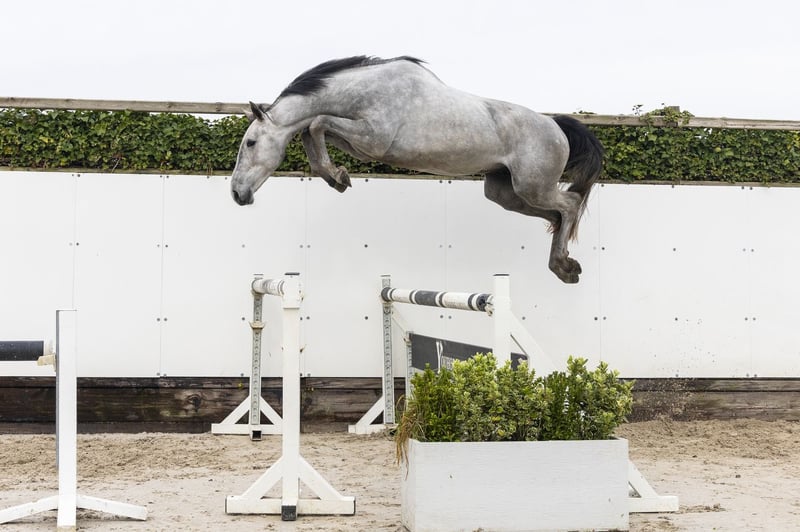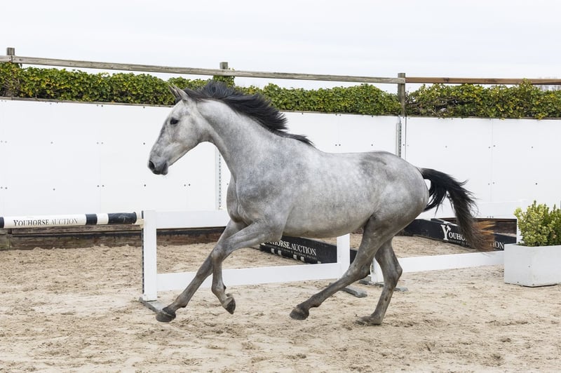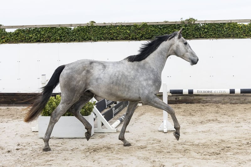 Beautiful sport grey with a lot of quality. Jumps with a lot of scope and shows to be very careful on the jump. Does his job well and gives a reliable impression. At this moment already an interesting horse for a wide group of sport riders. Sire CAVALIER RUSSE Z – no sport level mentioned Pedigree through CASALL (1.60m) and NABAB DE RÊVE (1.60m), proven top genes for showjumping. Dam BLUECASSINA – no sport results Damline / family Granddam: D-CASSINORADA – 1.45m Further in the line: CHATSTAR Z – 1.45m MISS BLUE Z – 1.35m PIMLICO – 1.35m Approved stallions in the line: CASALL, CARETINO, NABAB DE RÊVE, MR. BLUE, CASSINI I