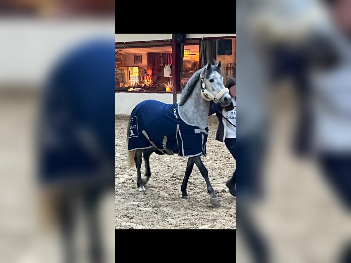 Jonge pony, zeer vriendelijk. Alleen of gezelschap tijdens een wandeling, zeer vriendelijk. Klaar voor parcours van 70/80 cm. Groen, maar leert snel.